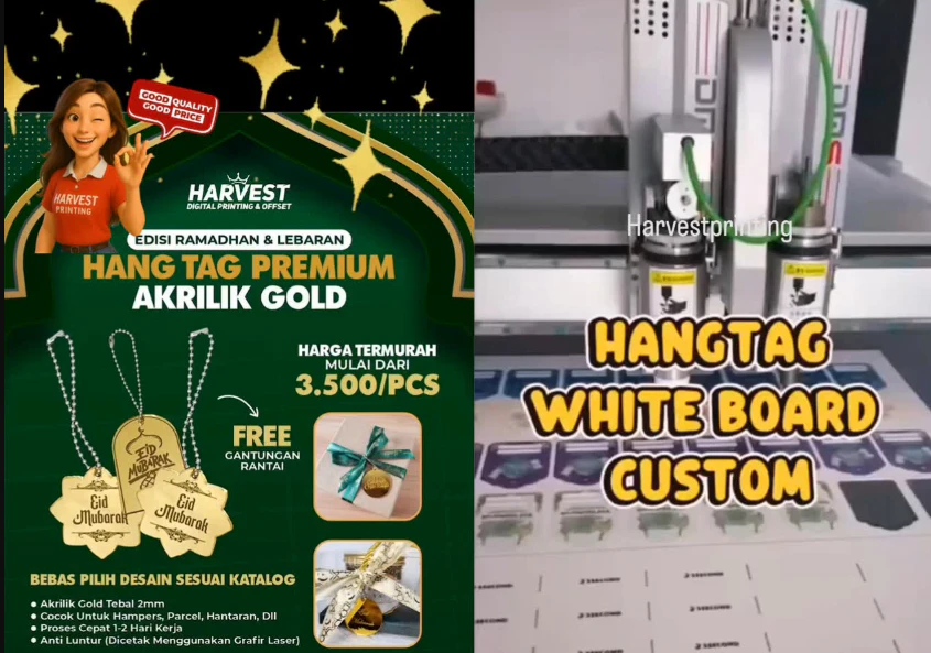 Sudahkah Anda menyiapkan desain terbaik untuk menyambut hari kemenangan tahun ini? Jangan biarkan hampers Anda tampil polosan tanpa identitas yang jelas. Pesan hang tag ramadan custom di Harvest Printing hari ini dan buat setiap kiriman Anda menjadi lebih berkesan bagi siapa pun yang menerimanya.